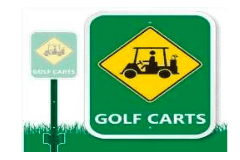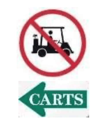 BUGGIES: These signs are to be placed at an appropriate point short of the green. The direction arrow will point the buggies to the point where ALL buggies will join the cart path.